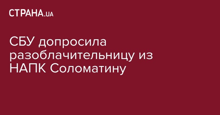 Служба безопасности Украины допросила бывшего руководителя департамента финансового контроля и мониторинга способа жизни Национального агентства по предотвращению коррупции (НАПК) Анну Соломатину по делу о возможных фальсификациях проверок электронных деклараций. Об этом "Украинским Новостям" сообщил адвокат Соломатиной Богдан Яворский.