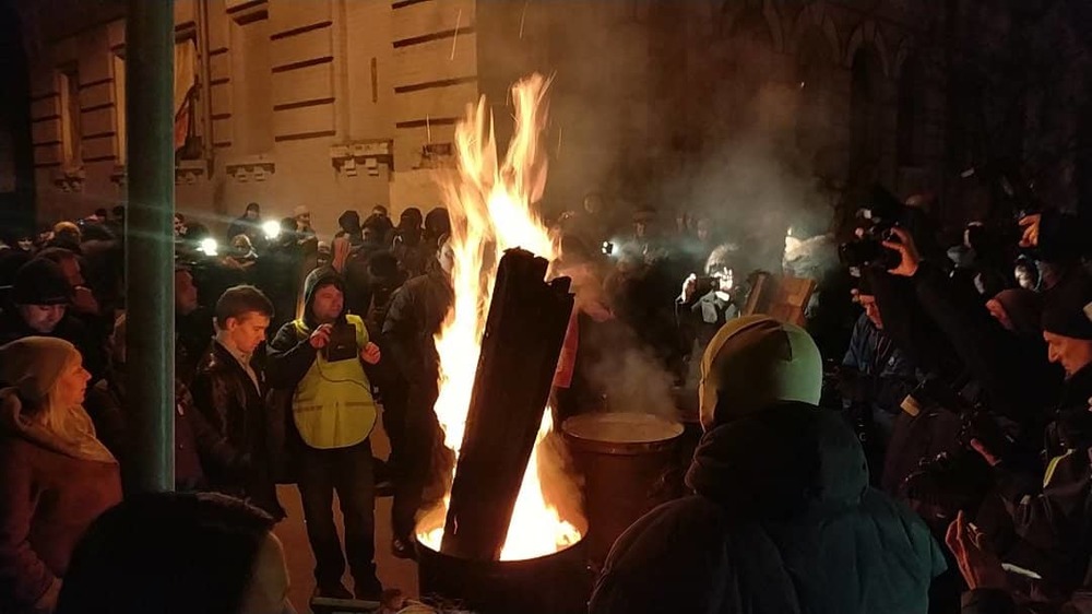 01.31 - Собравшиеся начали жечь костры в бочках.