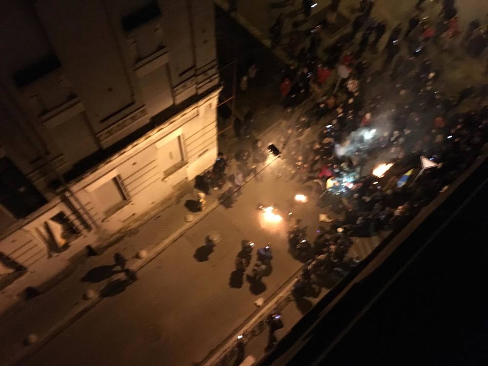 01.47 - Участники продолжают проводить политинформацию рядам полиции. И жгут костры в бочках.
