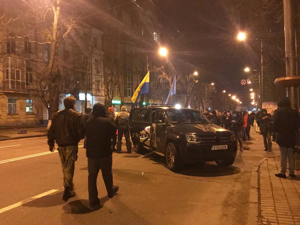 10.02 - Несколько десятков сторонников Михо стоят на пересечении Аскольдова переулка и улицы Мазепы. Периодически скандируют: "Слава Украине! Героям слава", "Банду геть!".
