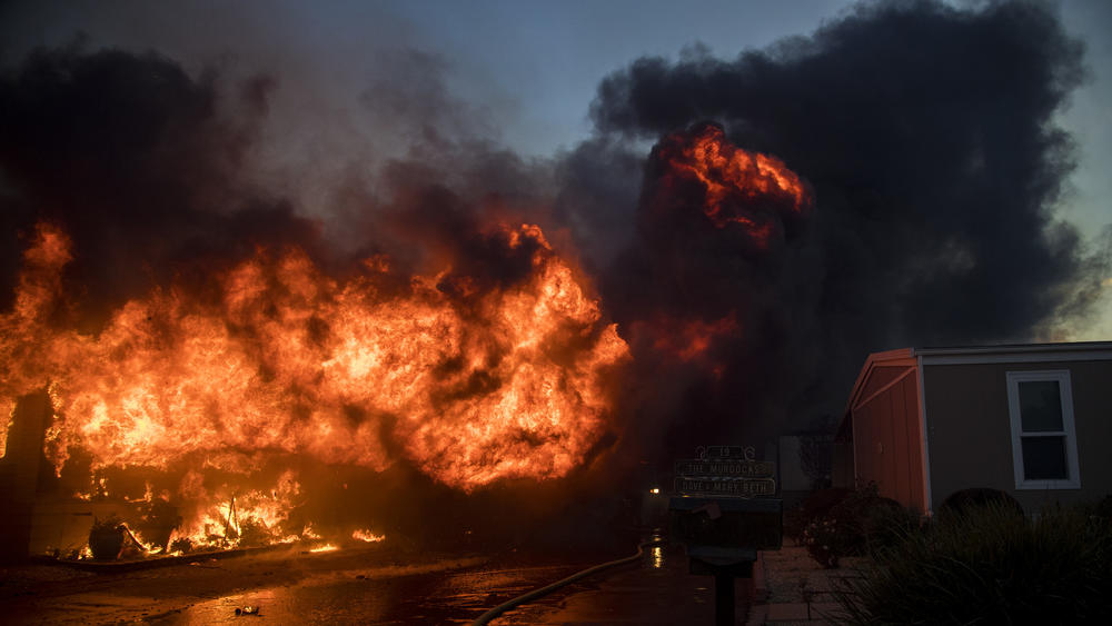 "Огонь уничтожил 1010 домов и построек и угрожает перекинуться еще на 25 тысяч", - добавило Управление защиты лесных угодий и противопожарной охраны Калифорнии в своем Twitter.