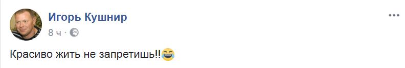 "Красиво жить не запретишь!" — добавил в комментарии Кушнир.