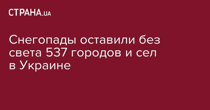 Из-за сильного снегопада, который обрушился вчера, 10 декабря, на Украину, в стране по состоянию на утро понедельника остаются без электроснабжения 537 населенных пунктов в 14 областях.