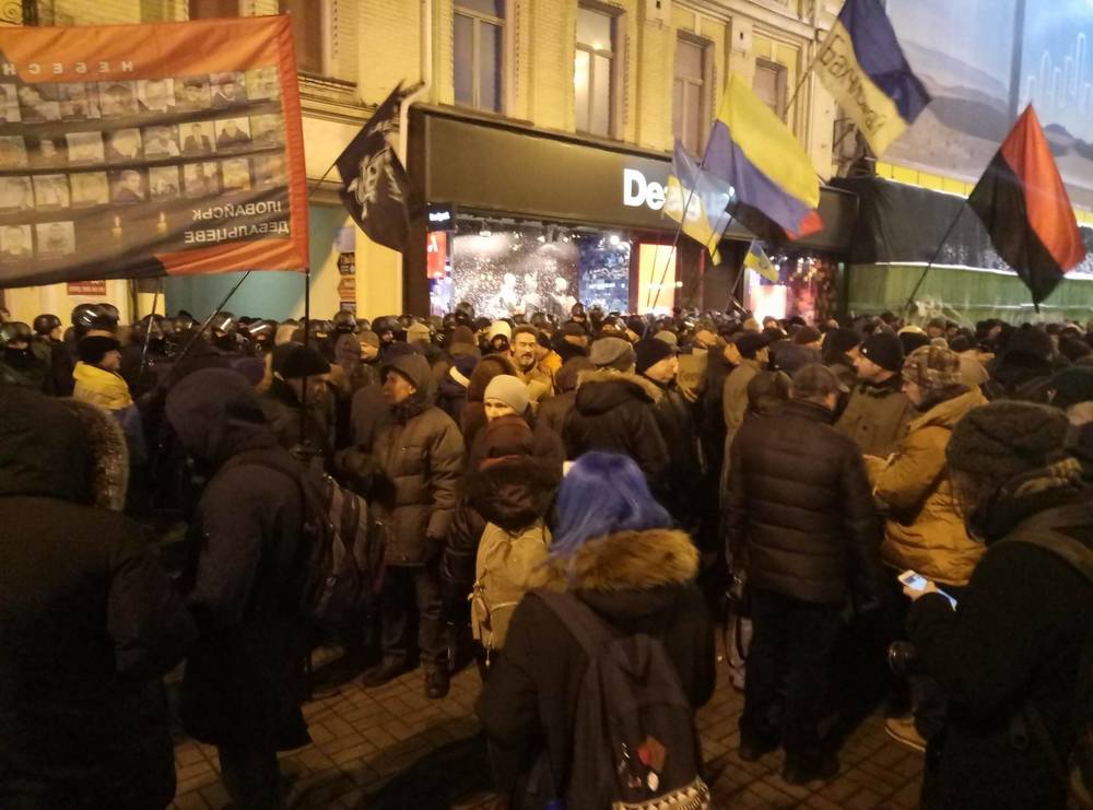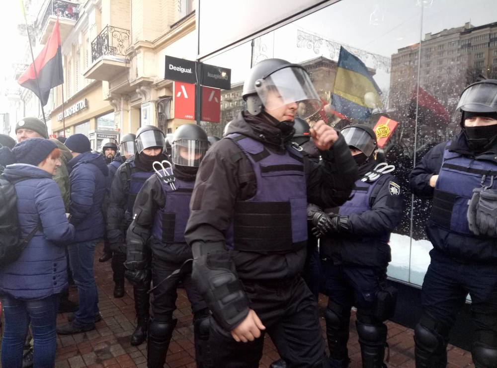 Для прохода Саакашвили по Крещатику дорогу на время перекрыли. Всего на Крещатике находилось около тысячи сторонников Михо.