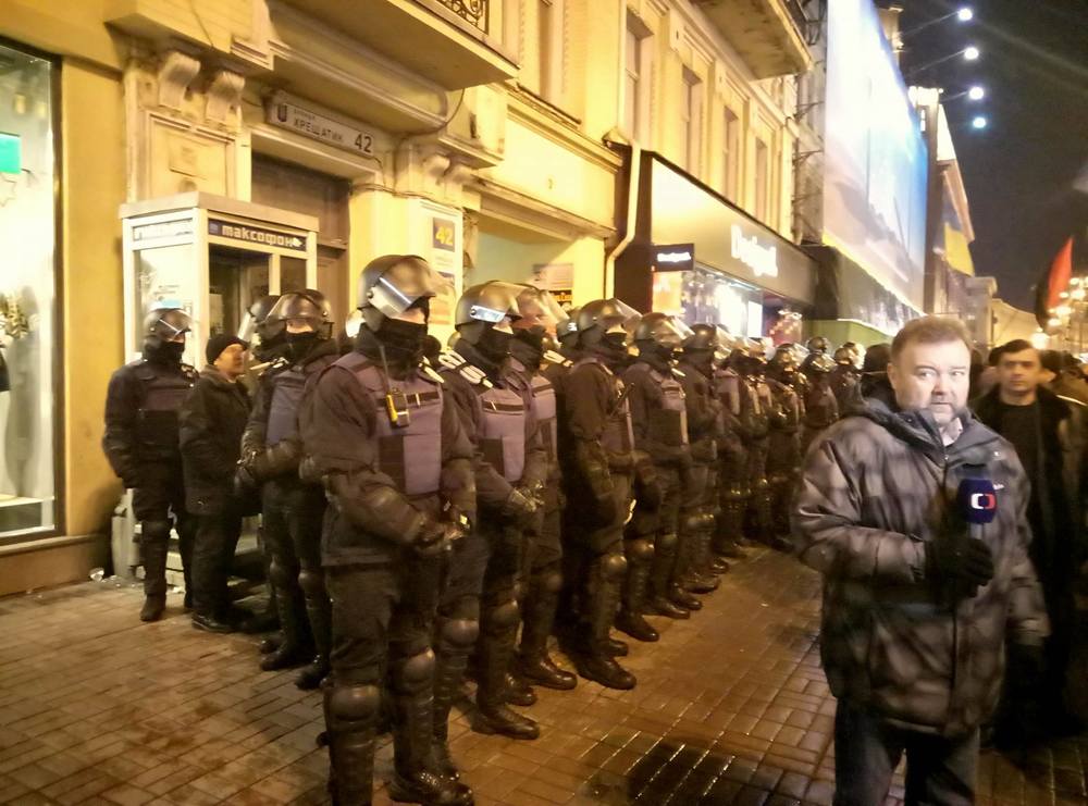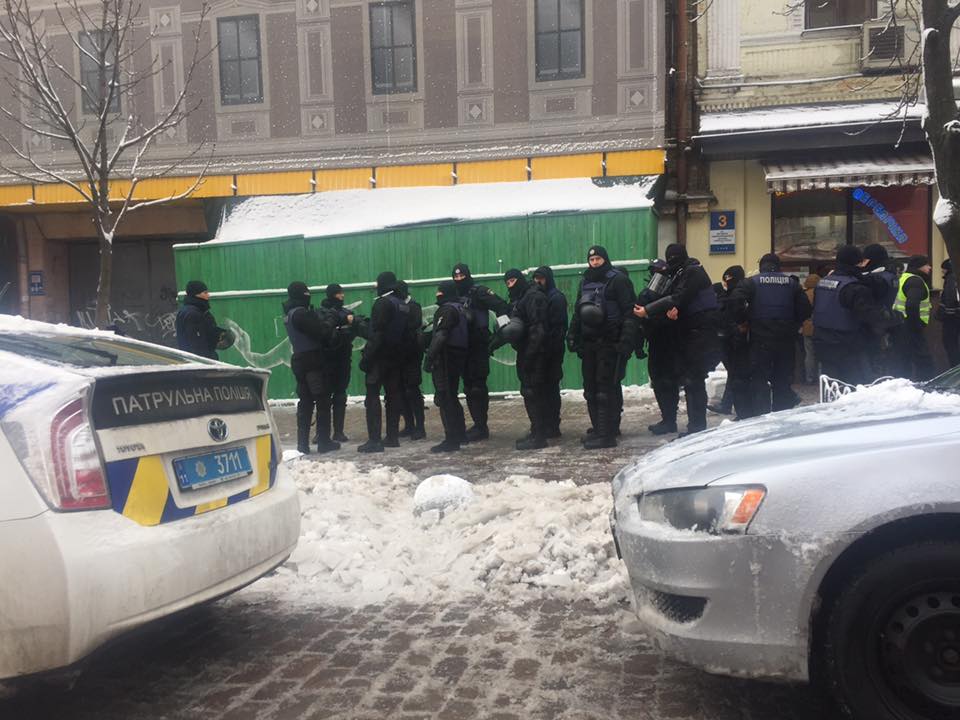 9:29 У Печерского суда уже строятся силовики. Суд начнется в 11:30, пишет в Facebook журналист Владимир Федорин.