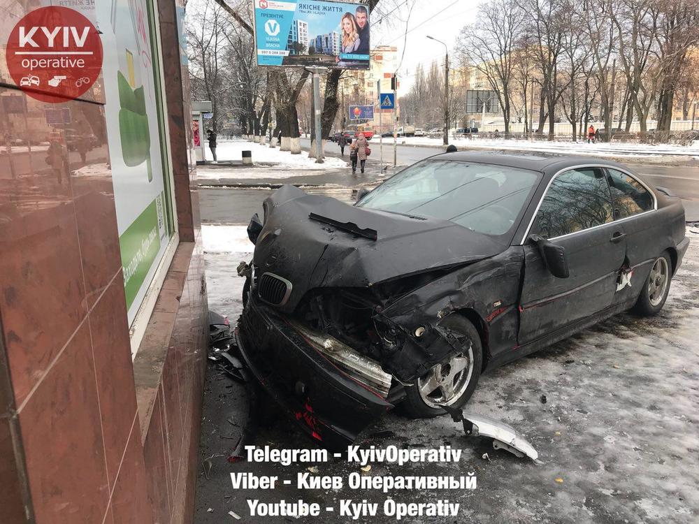 В Киеве BMW потаранило Приватбанк после ДТП на Телиги