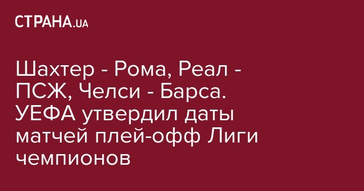 Шахтер - Рома, Реал - ПСЖ, Челси - Барса. УЕФА утвердил даты матчей плей-офф Лиги чемпионов