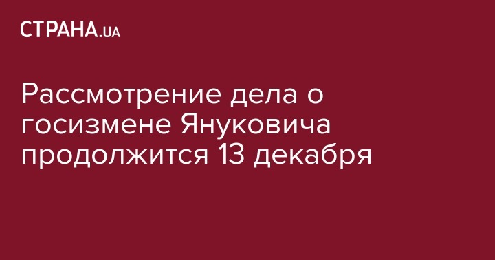 Рассмотрение дела о государственной измене Виктора Януковича в Оболонском районном суде Киева продолжится в среду, 13 декабря. Об этом сообщает Интерфакс.