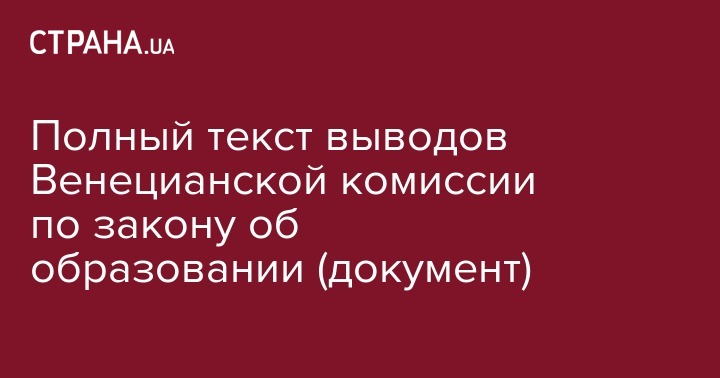 Сегодня Комиссия Совета Европы "За демократию через право" (Венецианская комиссия) официально опубликовала рекомендации Украине по закону об образовании в части обучения на языках национальных меньшинств.