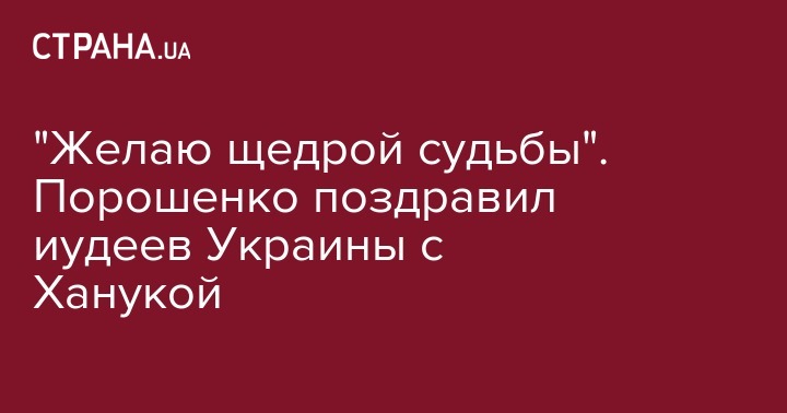 "Желаю щедрой судьбы". Порошенко поздравил иудеев Украины с Ханукой