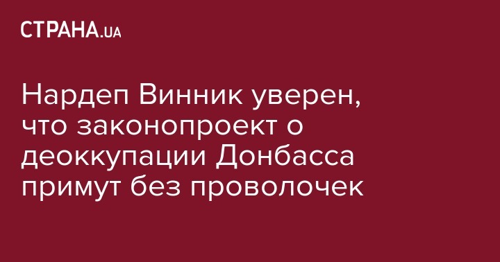 Нардепы всех фракций пришли к договоренности по всем поправкам в законопроекте о деоккупации Донбасса, он будет принят во втором чтении. Об этом заявил секретарь Комитета Верховной Рады по вопросам национальной безопасности и обороны Иван Винник в эфире телеканала "112 Украина"