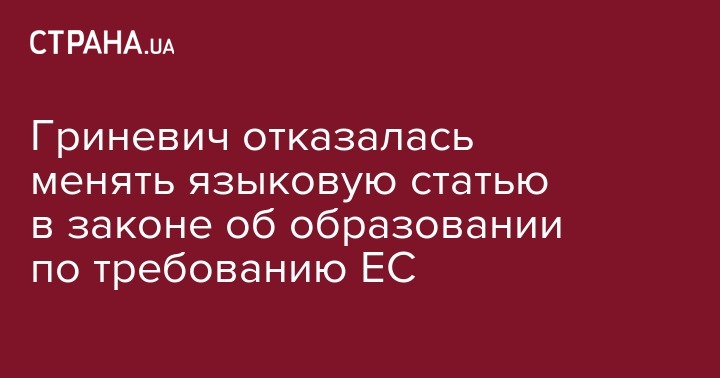 Киев еще раз ответил Евросоюзу, что менять языковую статью в законе об образовании так, как им рекомендует Венецианская комиссия, они не будут. Об этом заявила министр образования и науки Лилия Гриневич перед заседанием Кабмина, передает "Укринформ".