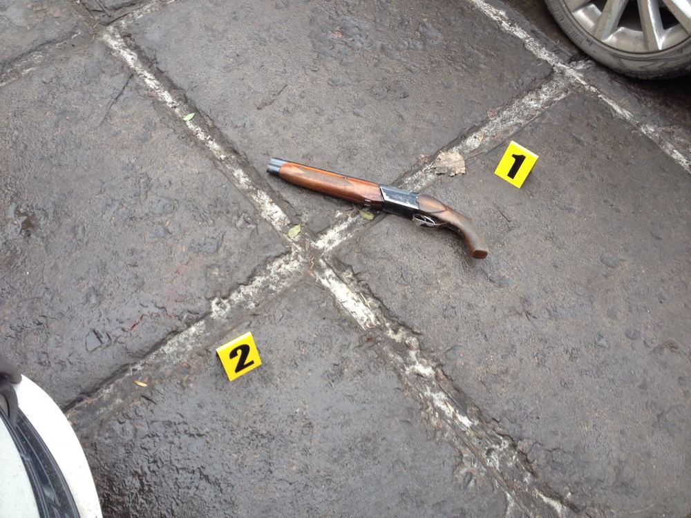 В прокуратуре отметили, что во время осмотра места происшествия у нападающего изъят обрез охотничьего ружья, граната с запалом, раскладной нож и патрон.