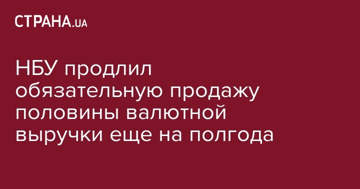 Национальный банк Украины (НБУ) продлил на очередные шесть месяцев – с 14 декабря 2017 года по 13 июня 2018 года включительно – требование об обязательной продаже 50% валютной выручки юридических лиц.