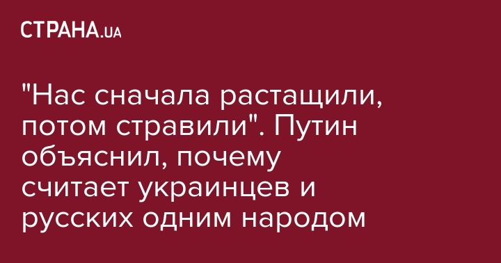 "Нас сначала растащили, потом стравили". Путин объяснил, почему считает украинцев и русских одним народом