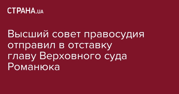 Высший совет правосудия (ВСП) уволил с должности главы Верховного суда Украины Ярослава Романюка в связи заявлением об отставке.