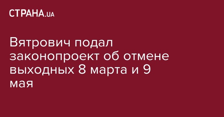 Ранее "Страна" сообщала, что министр информполитики Юрий Стець поддержал инициативу Вятровича отменить 8 марта и 9 мая, а также о том, что Вятровича вызывают "на ковер" в Раду из-за инициатив по 8 марта и 1 мая.