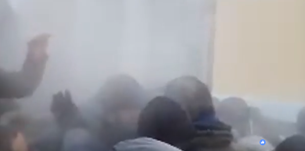 Возле него возникла давка - полиция не пускала  протестующих внутрь. Произошли потасовки, правоохранители распыляли газ, а митингующие разбили окна.