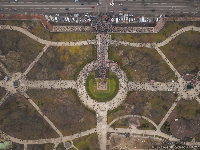 Количество протестующих лучше видно с высоты птичьего полета.
