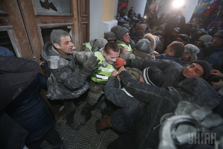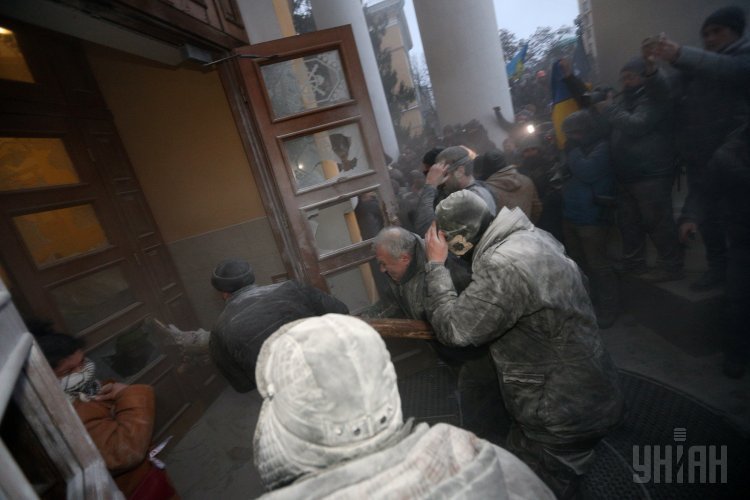 Протестующие разбили дверь во дворце Фото: УНИАН