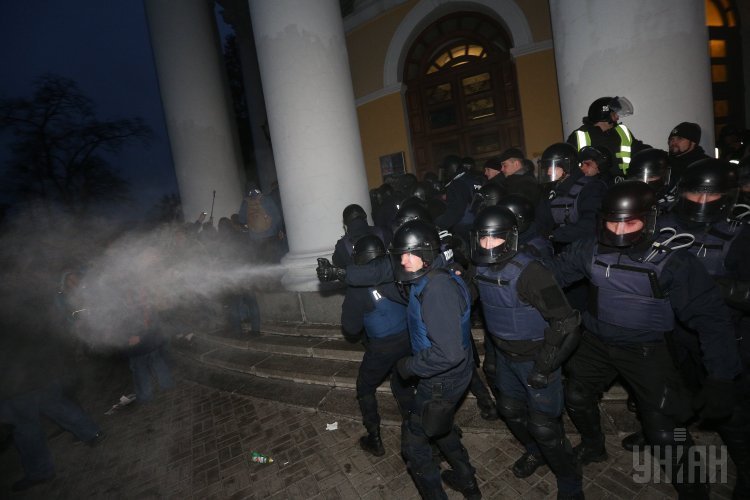 Полицейские воздействуют на протестующих при помощи газа Фото: УНИАН