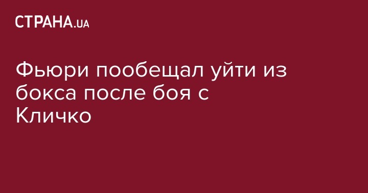 Британский боксер Тайсон Фьюри заявил, что покончит с боксом независимо от результата реванша с украинцем Владимиром Кличко.
