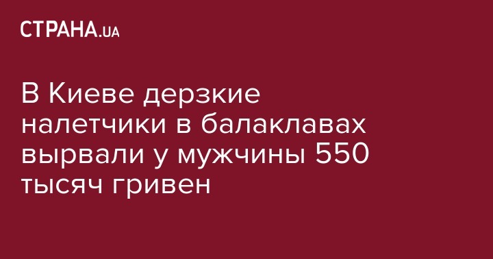 Четверо неизвестных в балаклавах ограбили мужчину прямо на улице. "Злоумышленники совершили нападение на перекрестке улиц Байковой и Малевича. Бандиты внезапно подбежали к мужчине, который разменял деньги, и, угрожая физической расправой, отобрали у него 550 тыс. грн", - говорится в сообщении.
