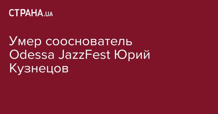 Популярный джазмен, который выступал одним из основателей Международного джазового фестиваля Odessa JazzFest Юрий Кузнецов умер в ночь на второе мая. Смерти предшествовала тяжелая болезнь, сообщила его жена Наталья Эртнова в соцсети Facebook.