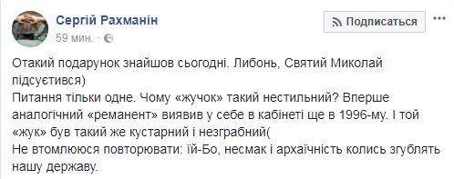 "Вот такой подарок нашел сегодня. Наверное, Святой Николай подсуетился)", - написал Рахманин.