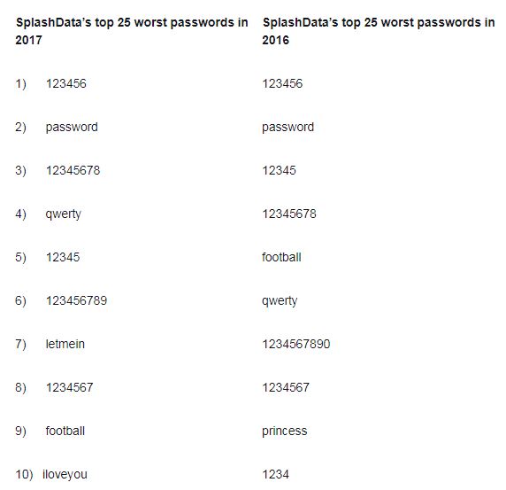 Опубликован список худших и самых ненадежных паролей, которые выбирали пользователи в 2017 году. Об этом сообщает портал CSO Online.