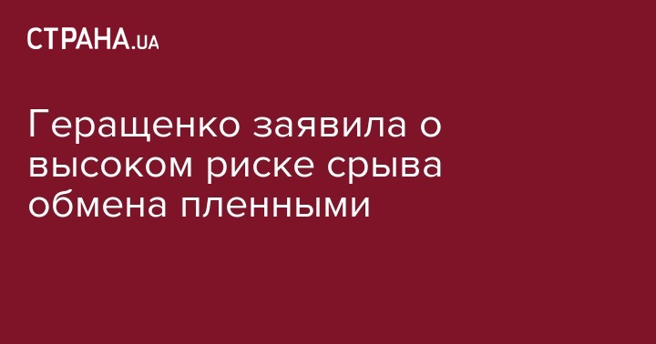 Украинский переговорщик по Донбассу и вице-спикер парламента Ирина Геращенко заявила, что есть высокий риск срыва процесса обмена пленными, который сейчас вышел на финишную прямую. Об этом она сказала в Раде, передает LB.