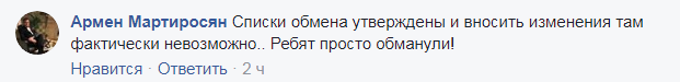 "Списки обмена (пленных - Прим.Ред.) утверждены и вносить изменения там фактически невозможно.. Ребят просто обманули!", - отметил Мартиросян.