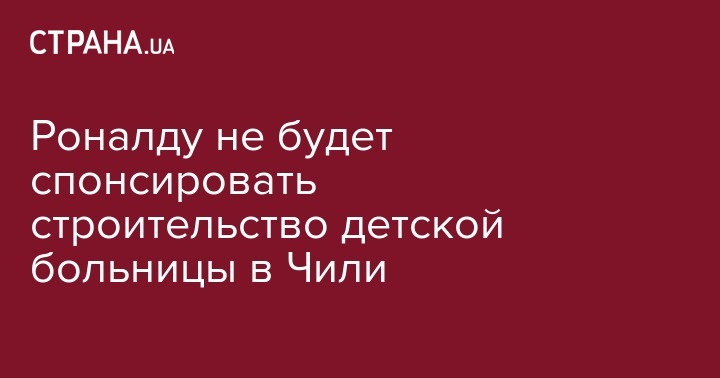 Роналду не будет спонсировать строительство детской больницы в Чили