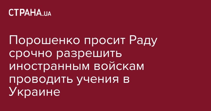 Порошенко просит Раду срочно разрешить иностранным войскам проводить учения в Украине