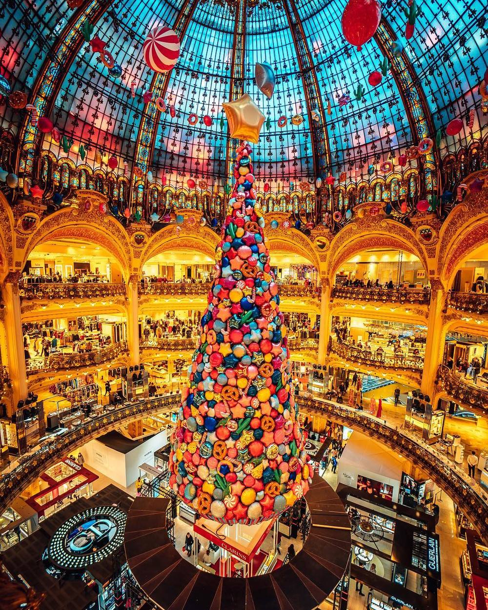 Легендарный универмаг Galeries Lafayette Paris на бульваре Осман – второе по посещаемости место в Париже среди туристов после Эйфелевой башни. За 105 лет существования в заведении сформировалось много красивых традиций, и фирменная новогодняя ель – одна из них. Каждый год команда дизайнеров работает над оформлением праздничного дерева, желая удивить покупателей.