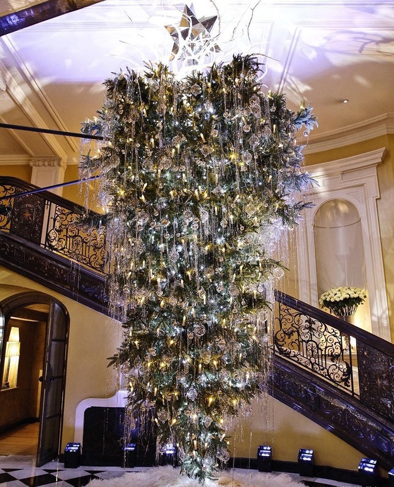 Дизайнер признался, что на такой неожиданный стилистический ход – подвешивание новогоднего дерева к потолку – его вдохновили собственные детские воспоминания о Рождестве,