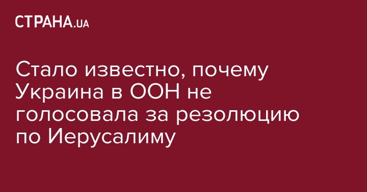 Стало известно, почему Украина в ООН не голосовала за резолюцию по Иерусалиму
