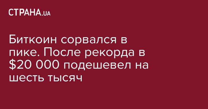 Биткоин сорвался в пике. После рекорда в $20 000 подешевел на шесть тысяч