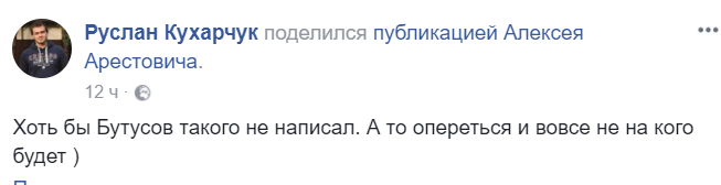 "Хоть бы Бутусов такого не написал. А то опереться и вовсе не на кого будет", - иронизирует журналист Руслан Кухарчук.