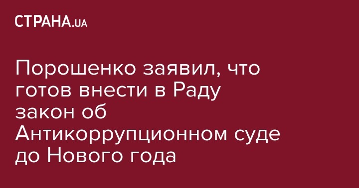 Президент Украины Петр Порошенко готов внести законопроект об Антикоррупционном суде, подготовленный экспертами, в Верховную Раду до конца текущего года, передает "Интерфакс-Украина".
