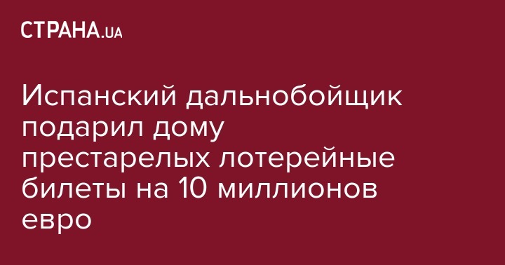 В Испании в городе Кампо де Криптано работники дома престарелых выиграли более 10 млн евро в национальной рождественской лотереи. Об этом сообщает портал La Nueva.
