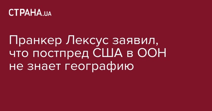 Пранкер Алексей Столяров ("Лексус") заявил, что постпред США в ООН Никки Хейли, которую недавно разыграли, не знает географию. Об этом сообщает RT.