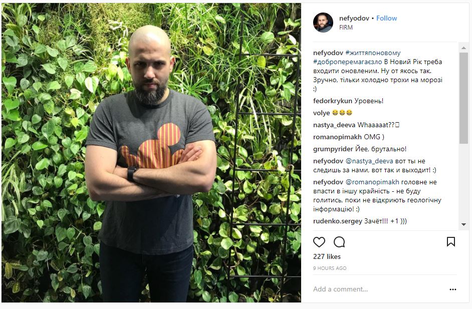 В комментариях к фото пользователи пишут Нефедову, что он выглядит брутальным. Сам Нефедов в шутку пишет, что "не будет бриться, пока не откроют геологическую информацию!"