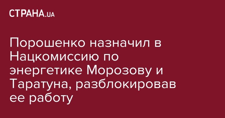 Порошенко назначил в Нацкомиссию по энергетике Морозову и Таратуна, разблокировав ее работу