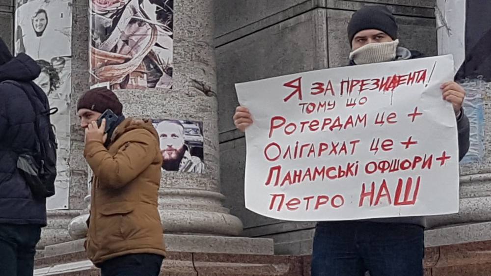 12:44 Еще одно фото противников Порошенко, которые завладели инициативой на митинге его сторонников. Они троллят гаранта плакатами "Порошенко - наш президент Вселенной".