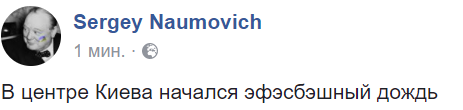 13:40 "В центре Киева начался эфэсбэшный дождь", - шутят в Facebook об угасании акции.
