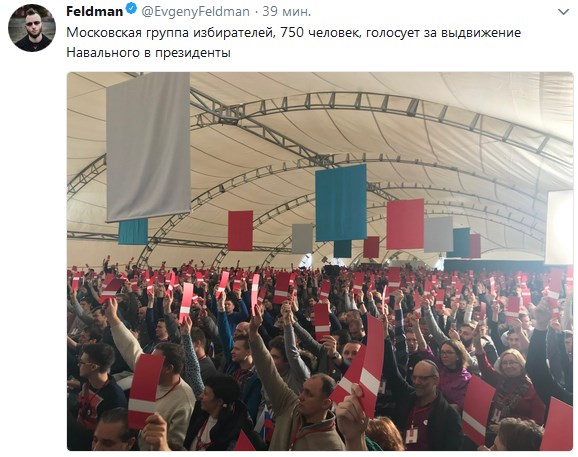 В воскресенье, 24 декабря, Алексея Навального выдвинули кандидатом в президенты на собрании избирателей в Москве. За это проголосовали 742 человека. Об этом сообщила пресс-секретарь политика Кира Ярмыш в Twitter.