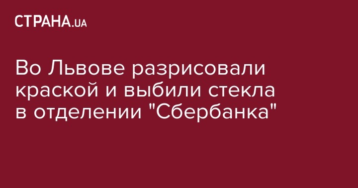 Во Львове разбили окна и разрисовали фасад отделения "Сбербанка".