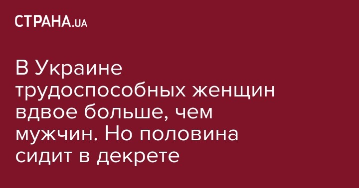 В Украине трудоспособных женщин вдвое больше, чем мужчин. Но половина сидит в декрете