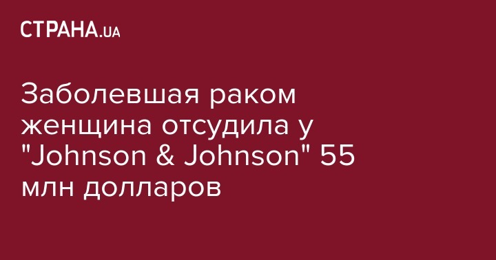 Американский суд обязал косметическую компанию "Johnson & Johnson" выплатить 55 миллионов долларов женщине, у которой, по её словам, образовался рак из-за пользования продукцией компании, сообщает Reuters.